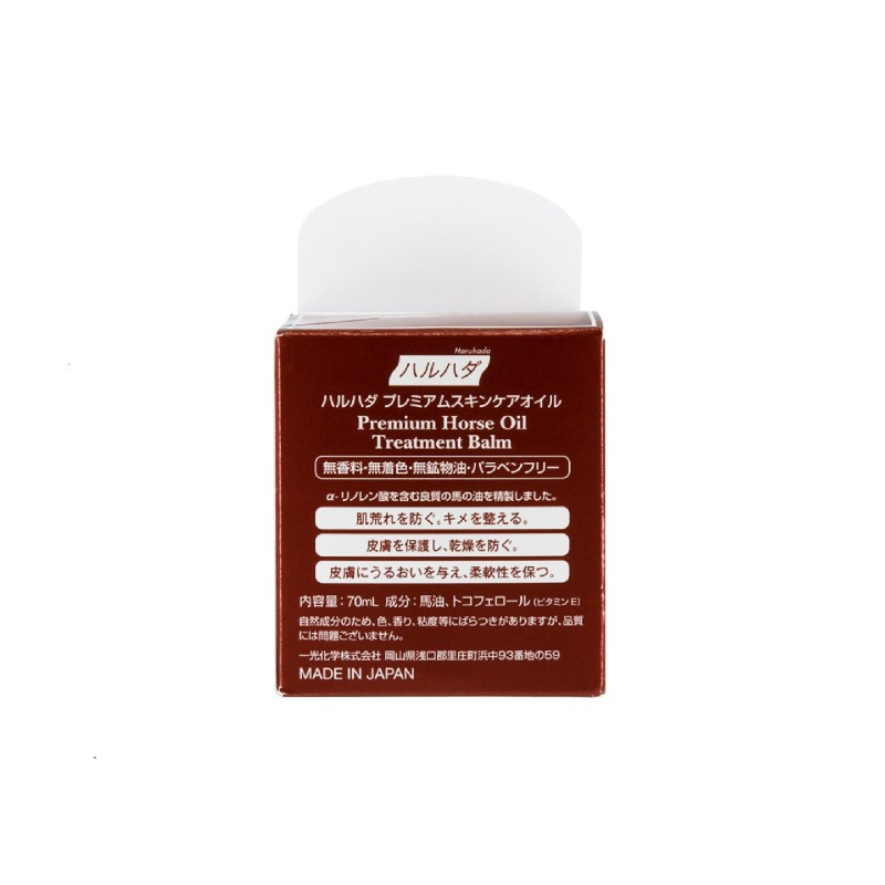 Made from japanese horse oil. It is easily absorted to moisturize, repair and nourish, your dehydrated skin. With added vitamin E for an anti-oxidant, effect and for a smoother, more delicate complexion. No fragrance, colorant, mineral oil or parabens. It can be applied to any part of the body. A home essential throughout the year for every family.